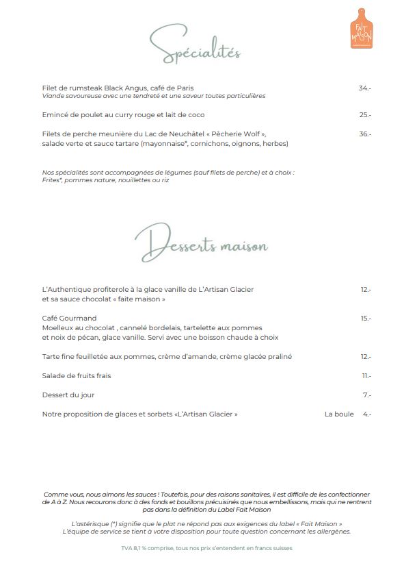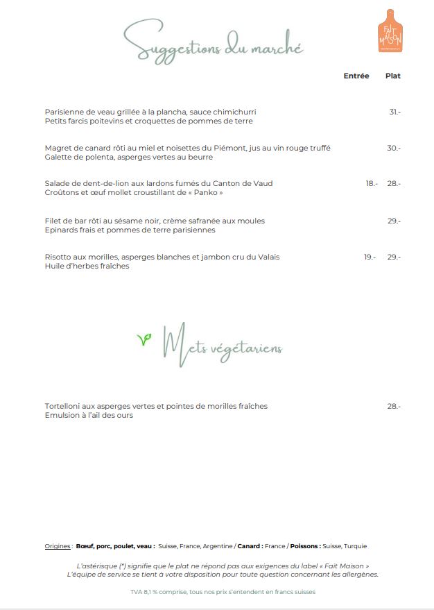 Carte de mets