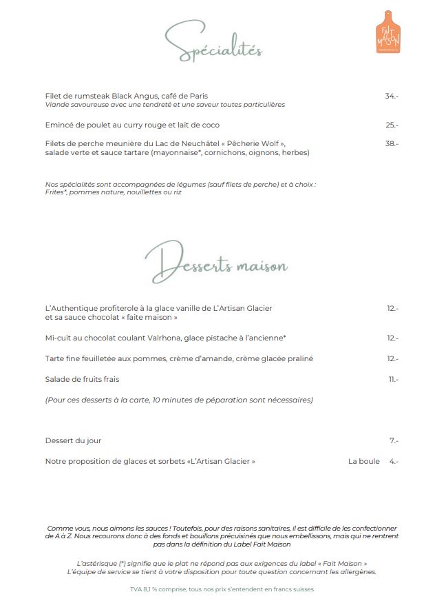 La Carte des boissons