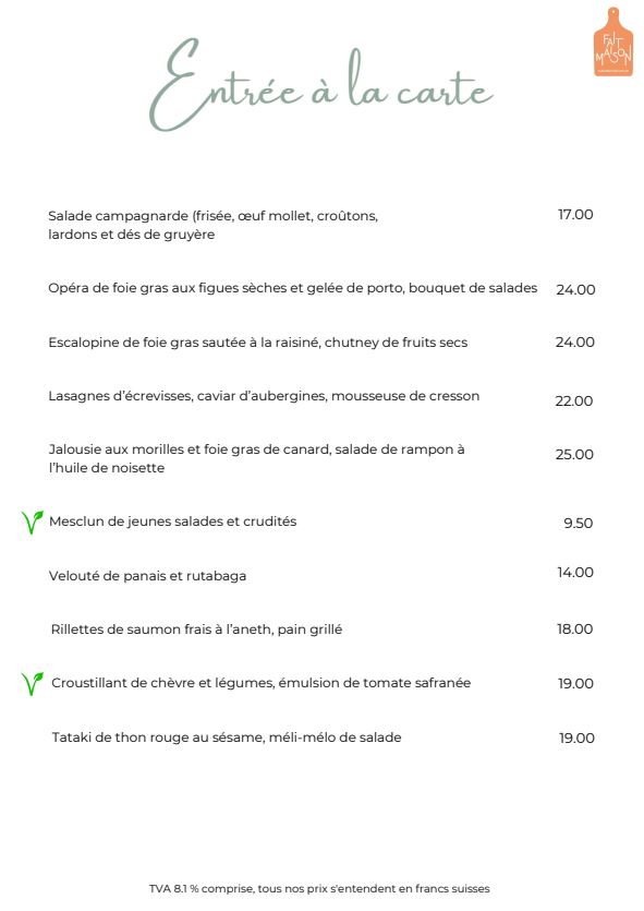 Carte de mets